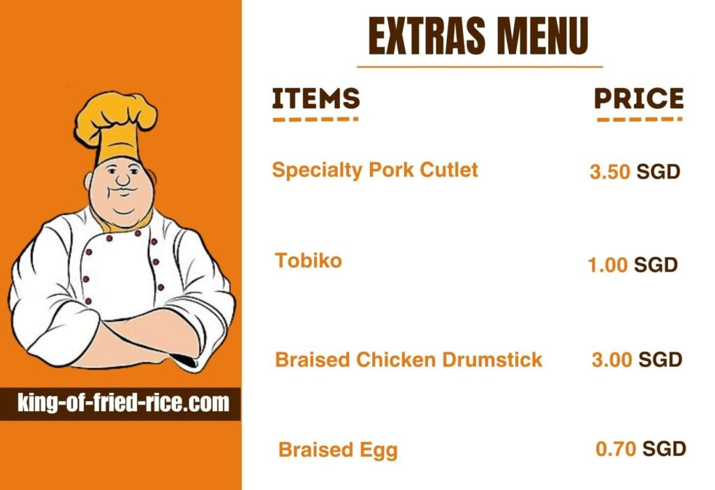 Tobiko and Braised Egg are the cheapest option availble in King Of Fried Rice Menu.